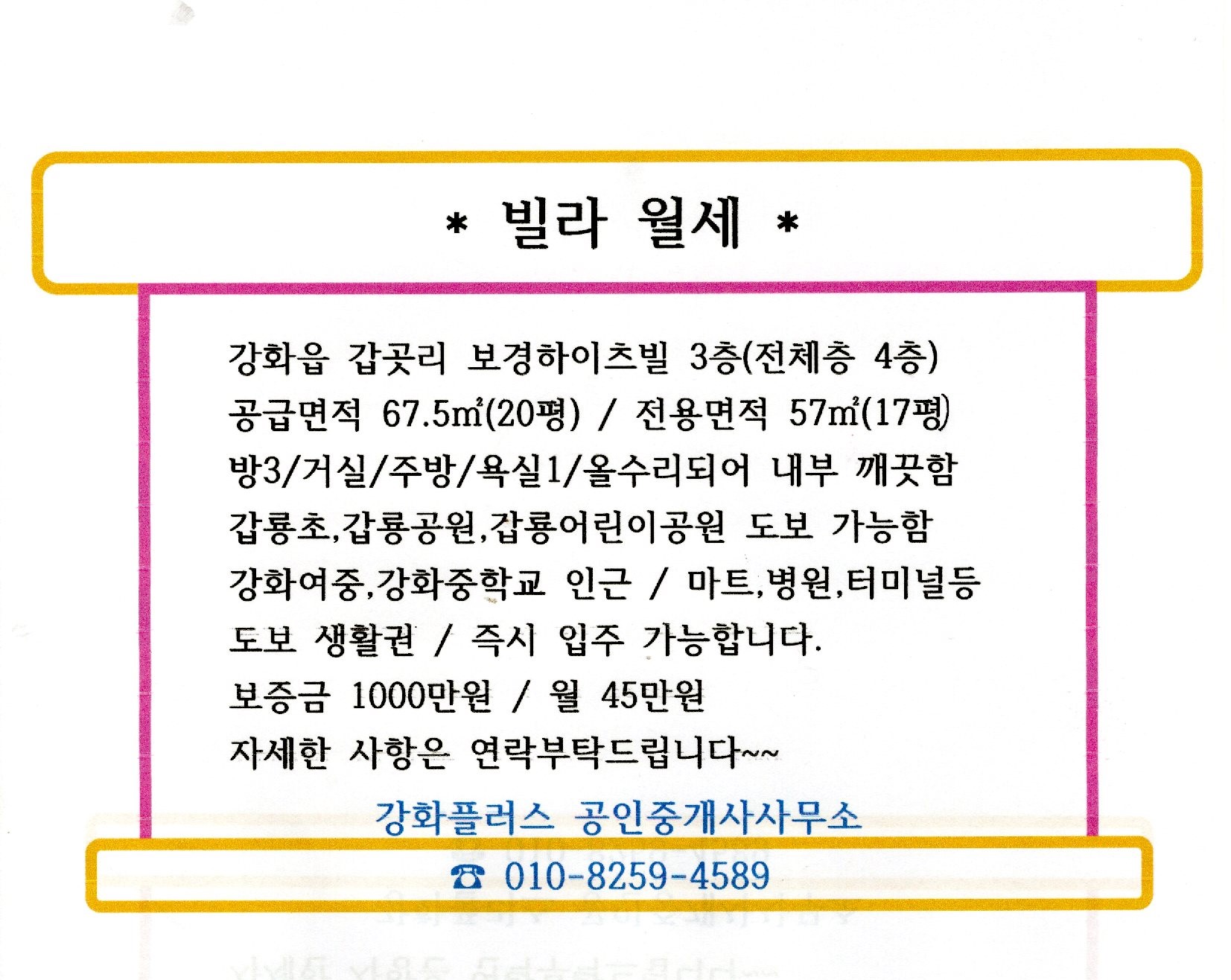 *갑룡초 인근 빌라 월세 (강화읍 갑곳리/올수리되어 깨끗함/즉시입주가능함)*