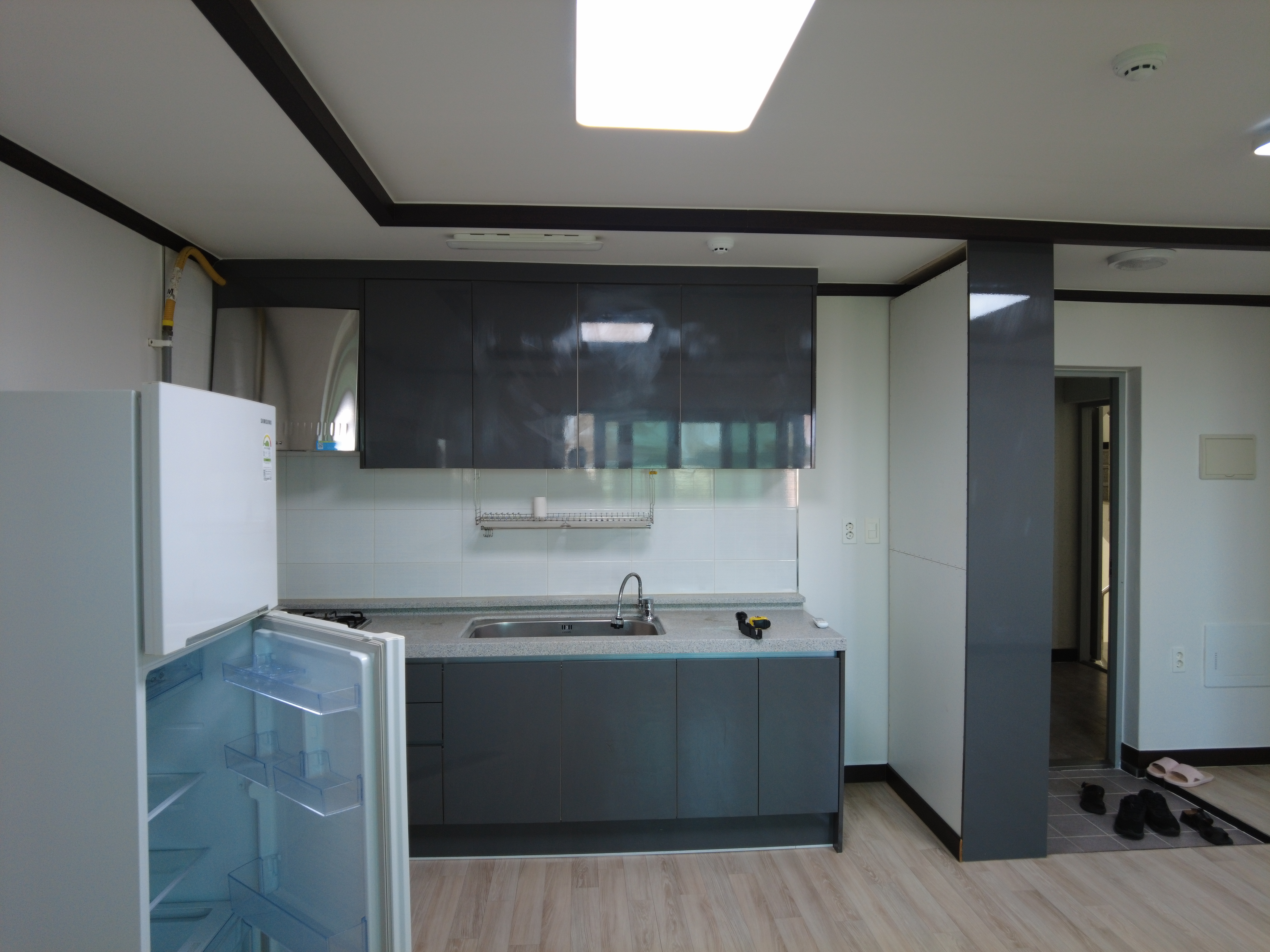 생활시설: 신발장, 냉장고, 세탁기, 싱크대, 가스레인지
