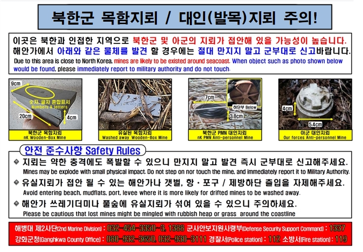 미확인 폭발물(목함지뢰 등) 사고예방 알림