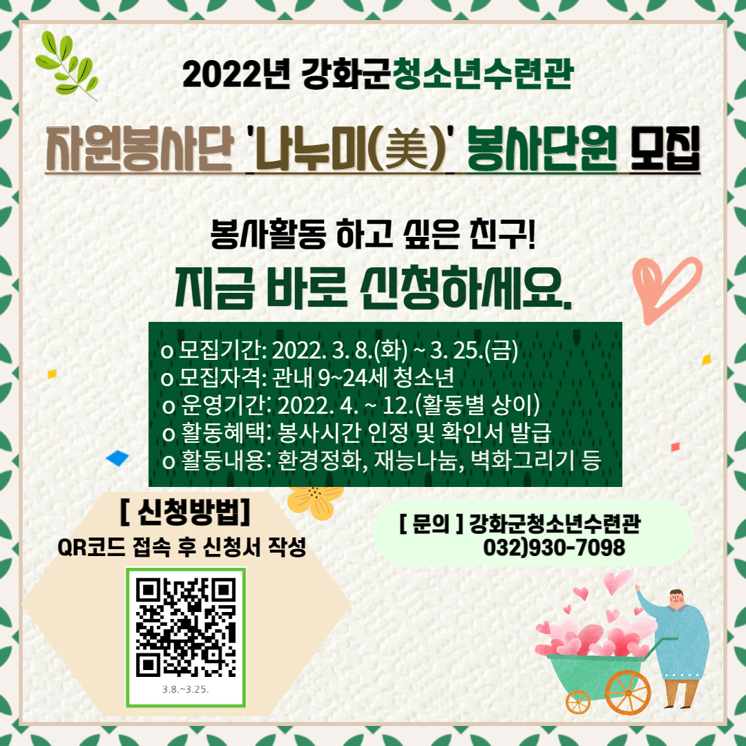 2022년 강화군 청소년수련관 ′나누미(美)′ 자원봉사단원 모집