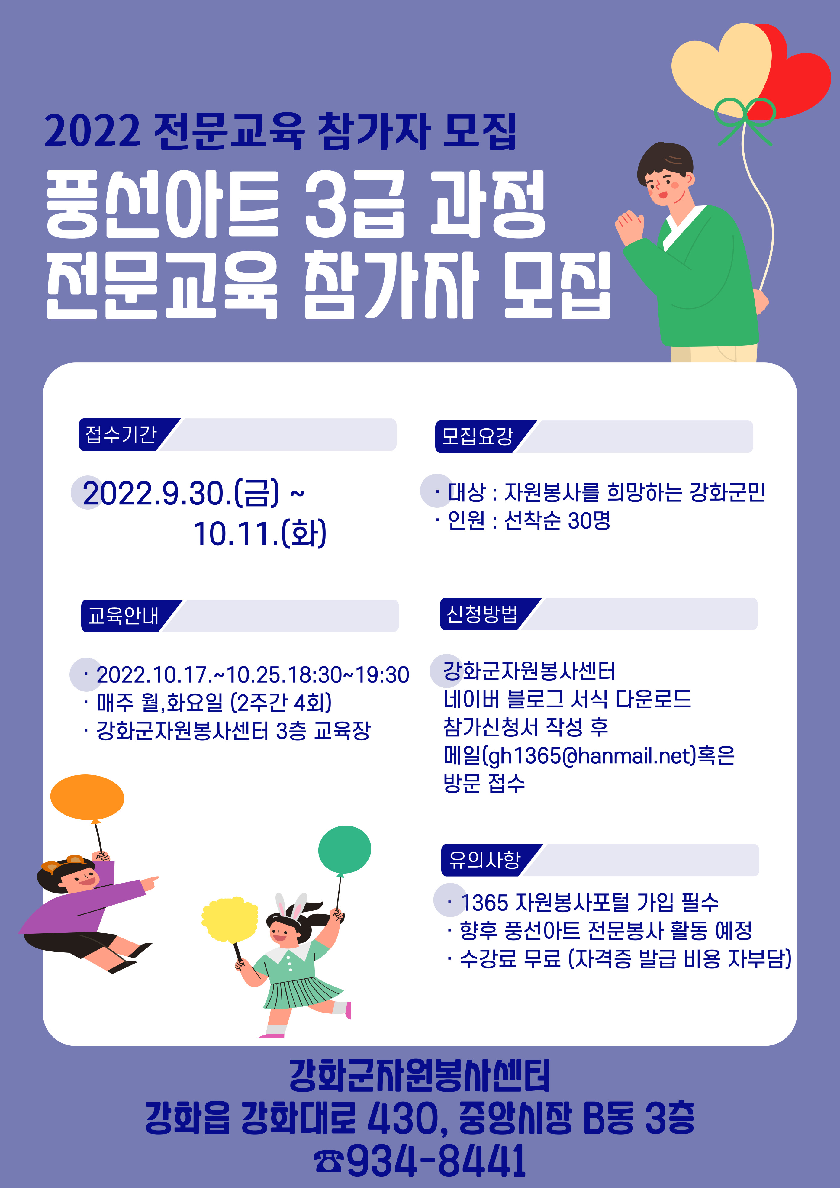 2022년 전문 자원봉사자 양성[풍선아트 3급 과정] 교육 참가자 모집