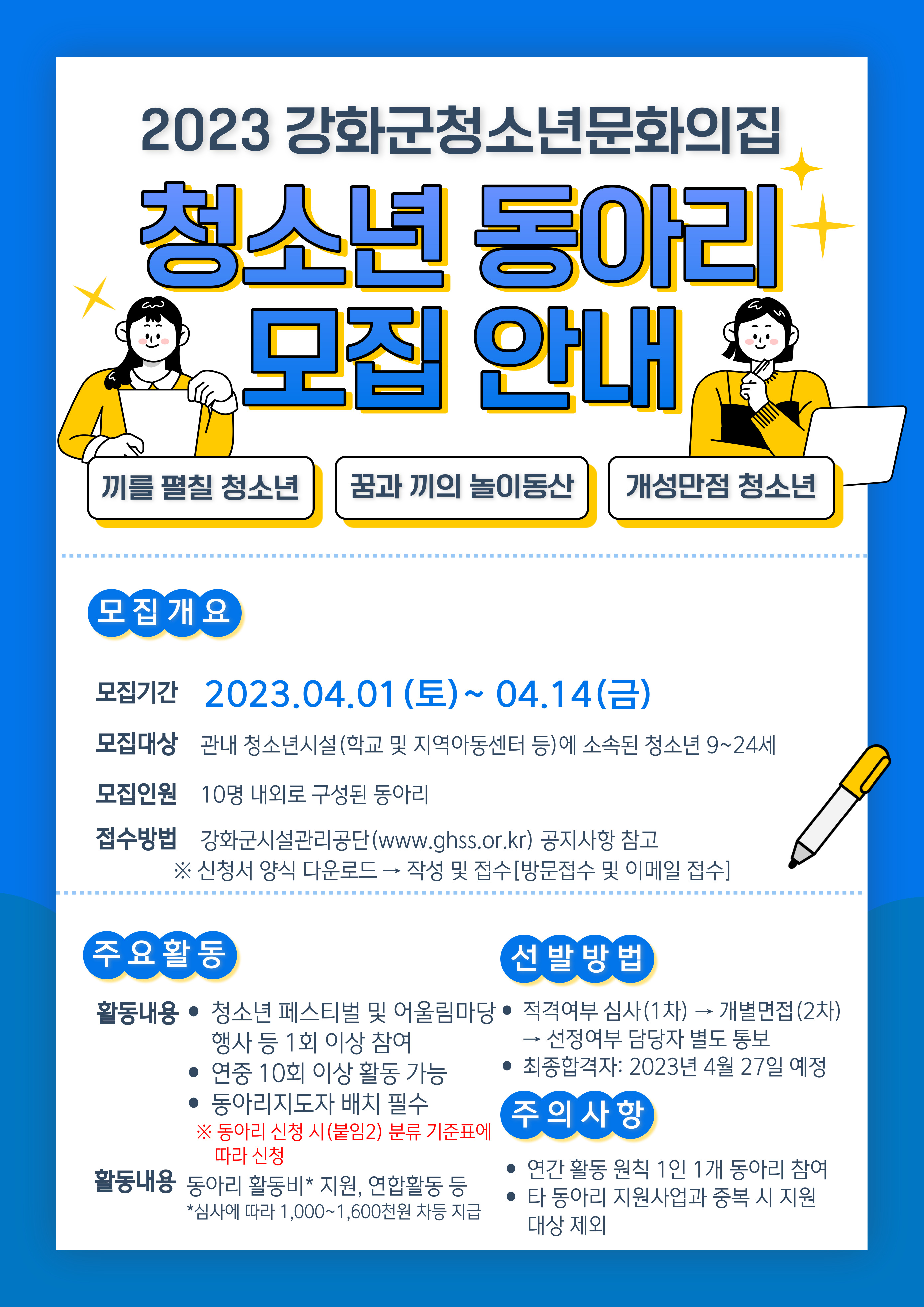 2023년 강화군청소년문화의집 「청소년동아리활동지원사업」 모집