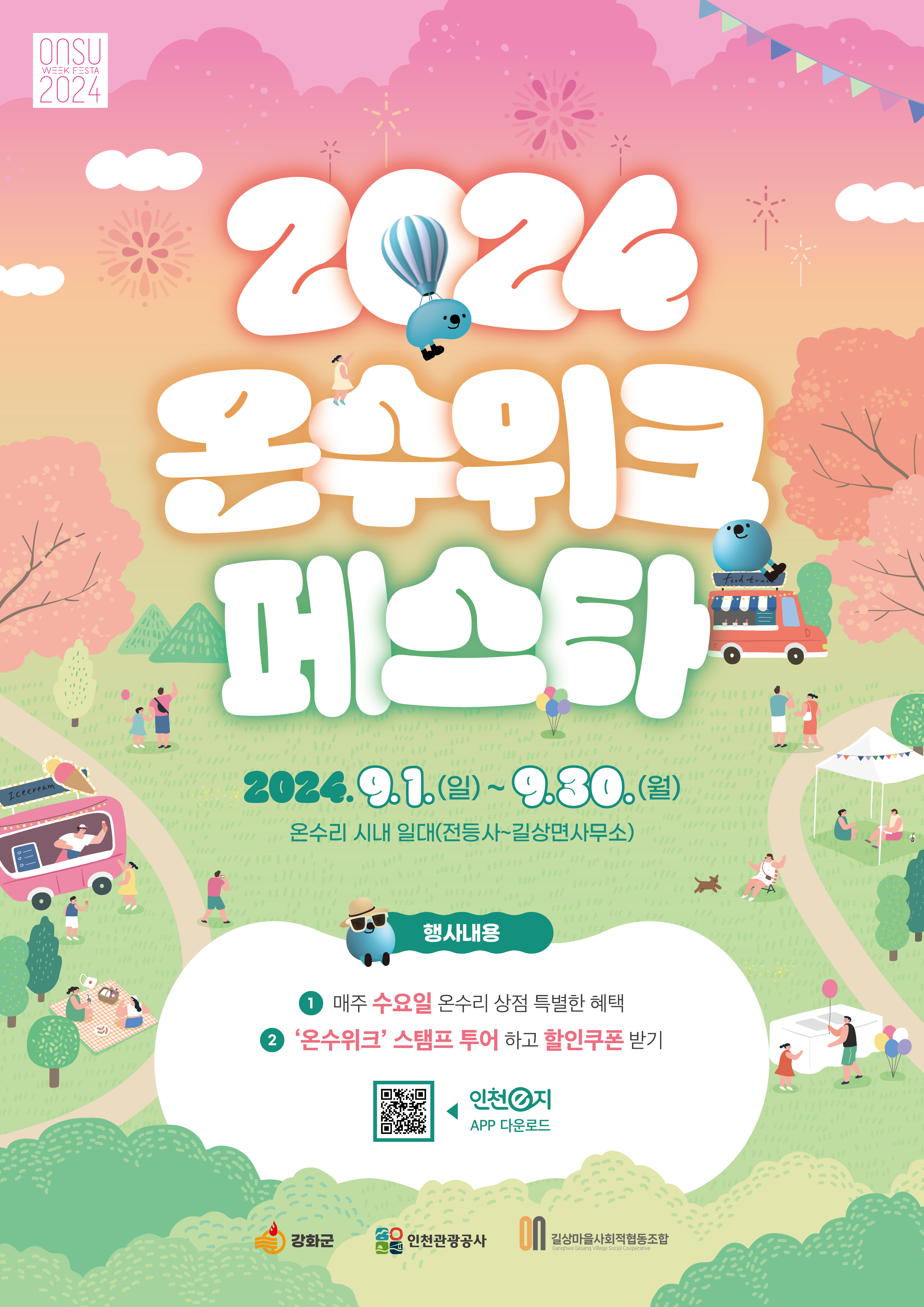- 인천e지 앱에서 '2024 온수위크 페스타' 스탬프 투어 완주시 할인쿠폰 지급