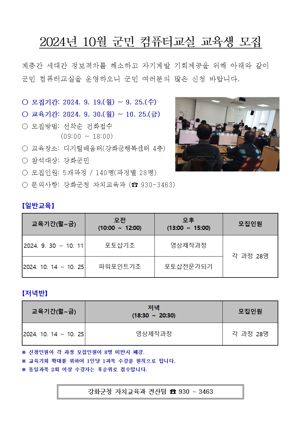 2024년 10월 군민컴퓨터 교실 모집 안내