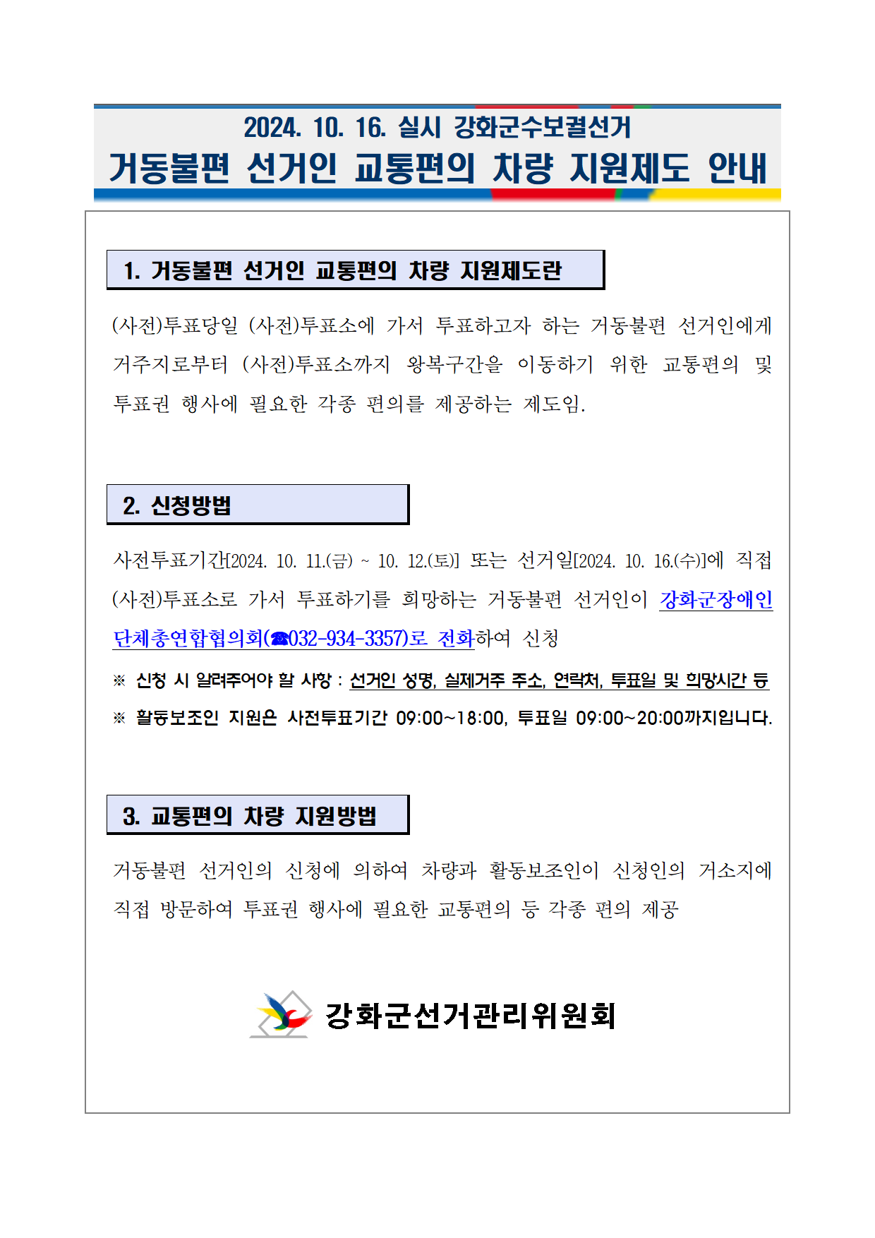 거동불편 선거인 교통편의 차량 지원제도 안내