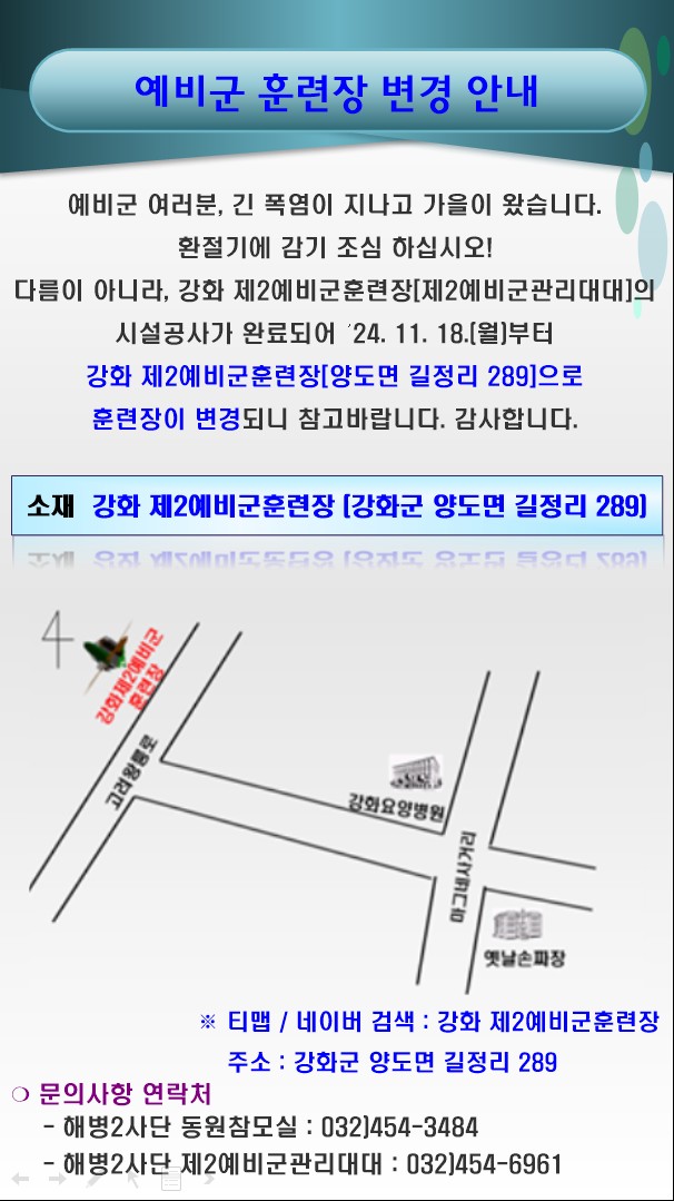 예비군 훈련장 변경 안내