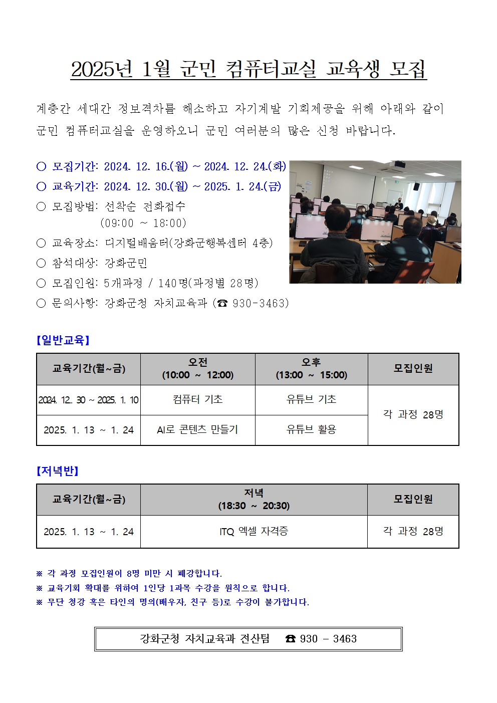 2025년 1월 군민컴퓨터 교실 모집 안내