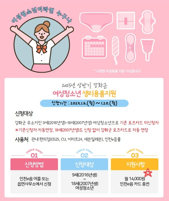 2025년 상반기 강화군 여성청소년 보건위생물품 지원안내