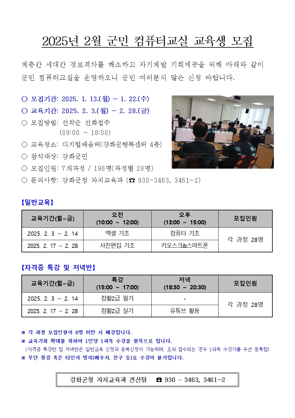 2025년 2월 군민컴퓨터 교실 모집 안내