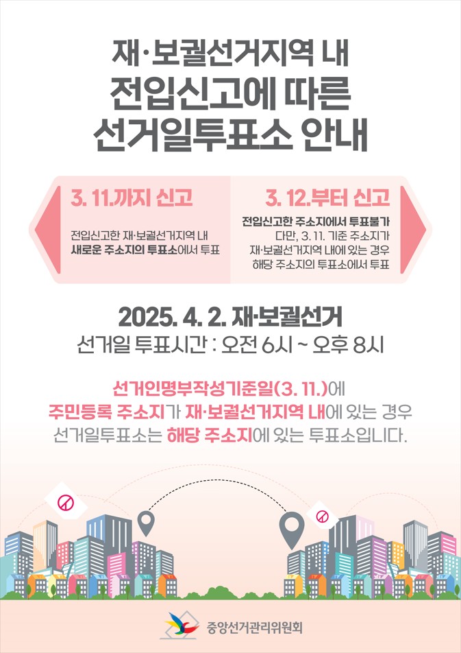 재보궐선거 전입신고에 따른 선거일투표소 안내