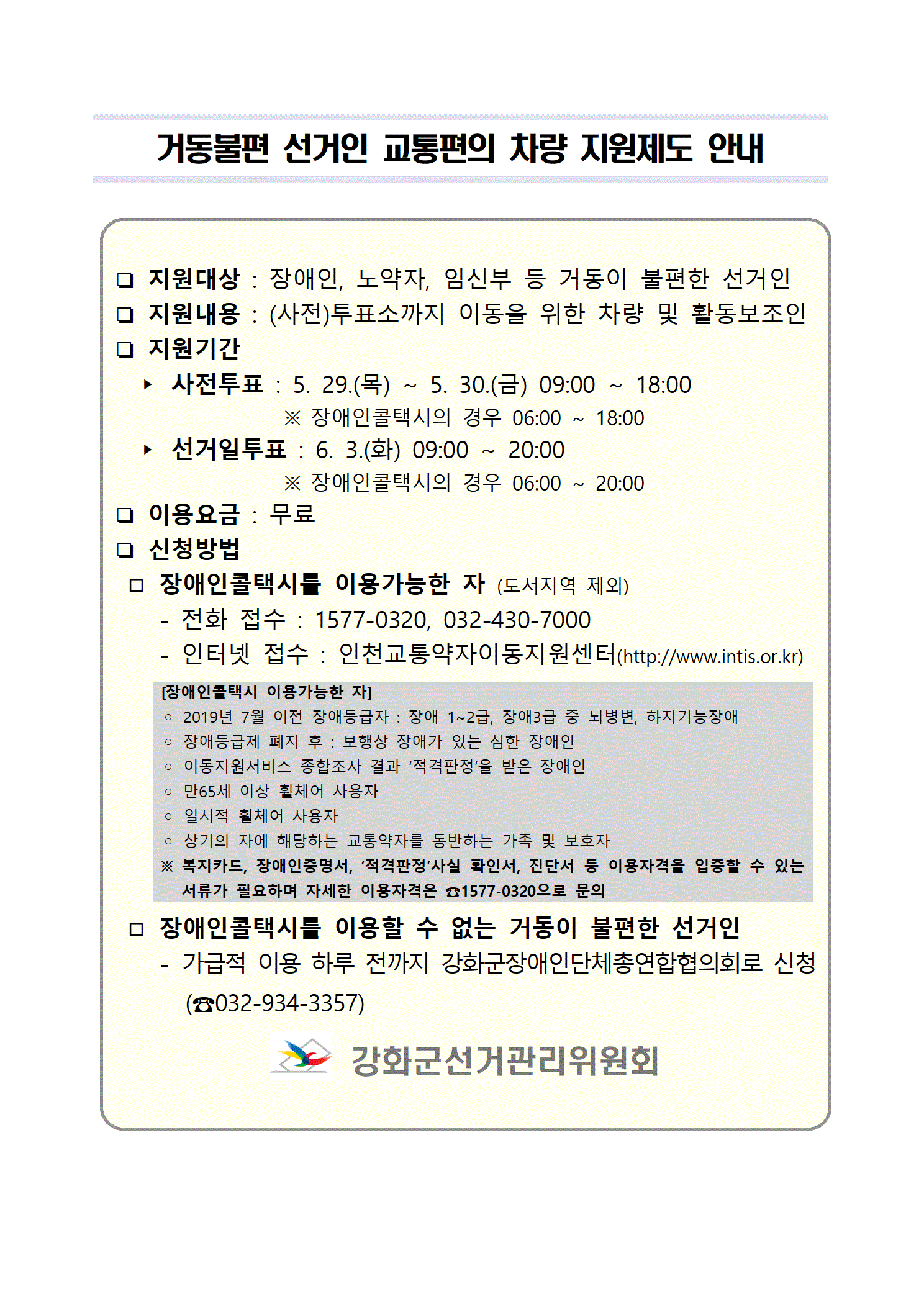 제21대 대통령선거 거동불편 선거인 교통편의 지원제도 안내