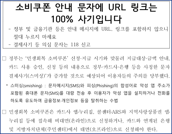 소비쿠폰 안내 문자에 인터넷주소링크(URL)는 절대 클릭금지