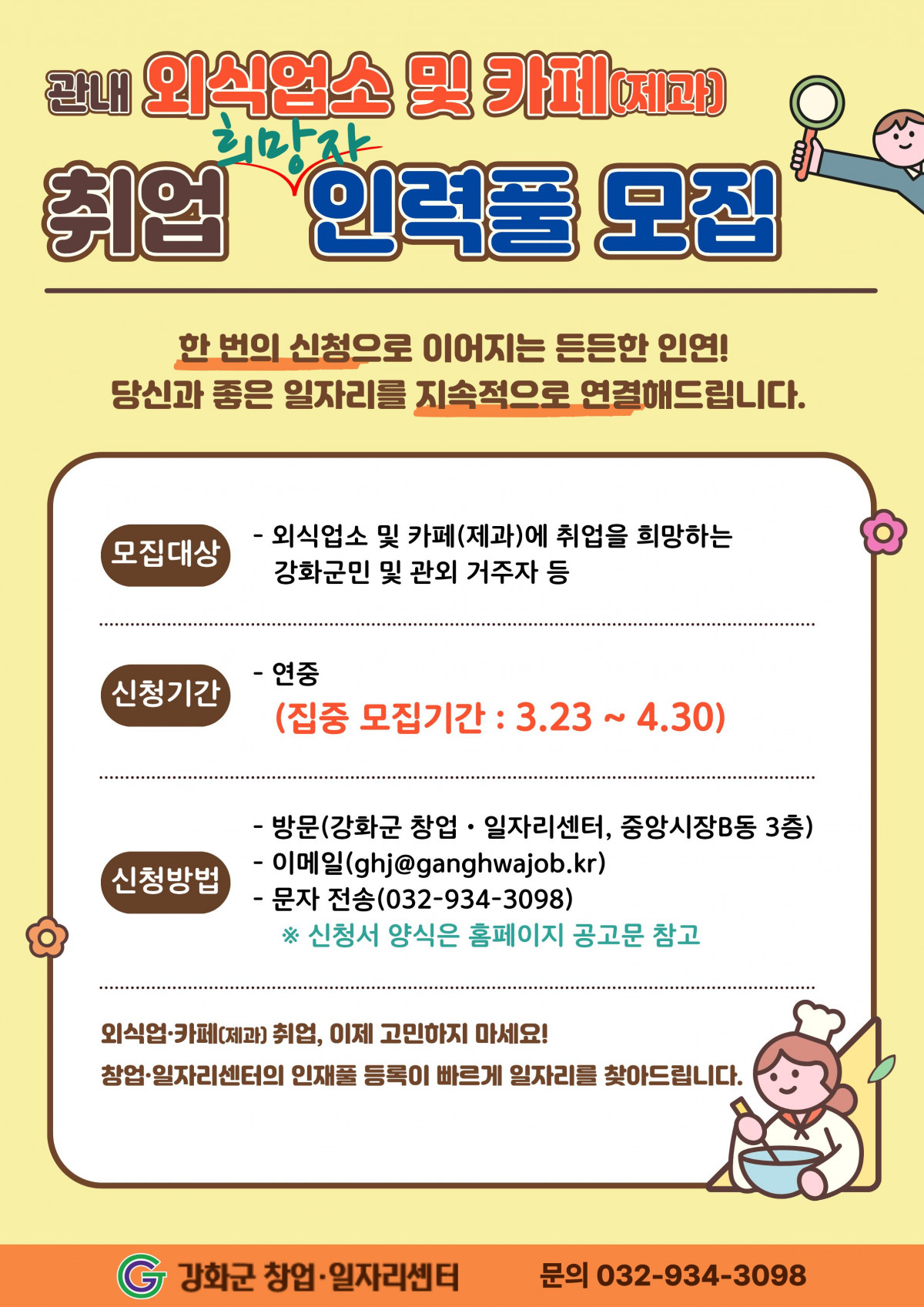 관내 외식업소 및 카페(제과) 취업 희망자 인력풀 모집 공고