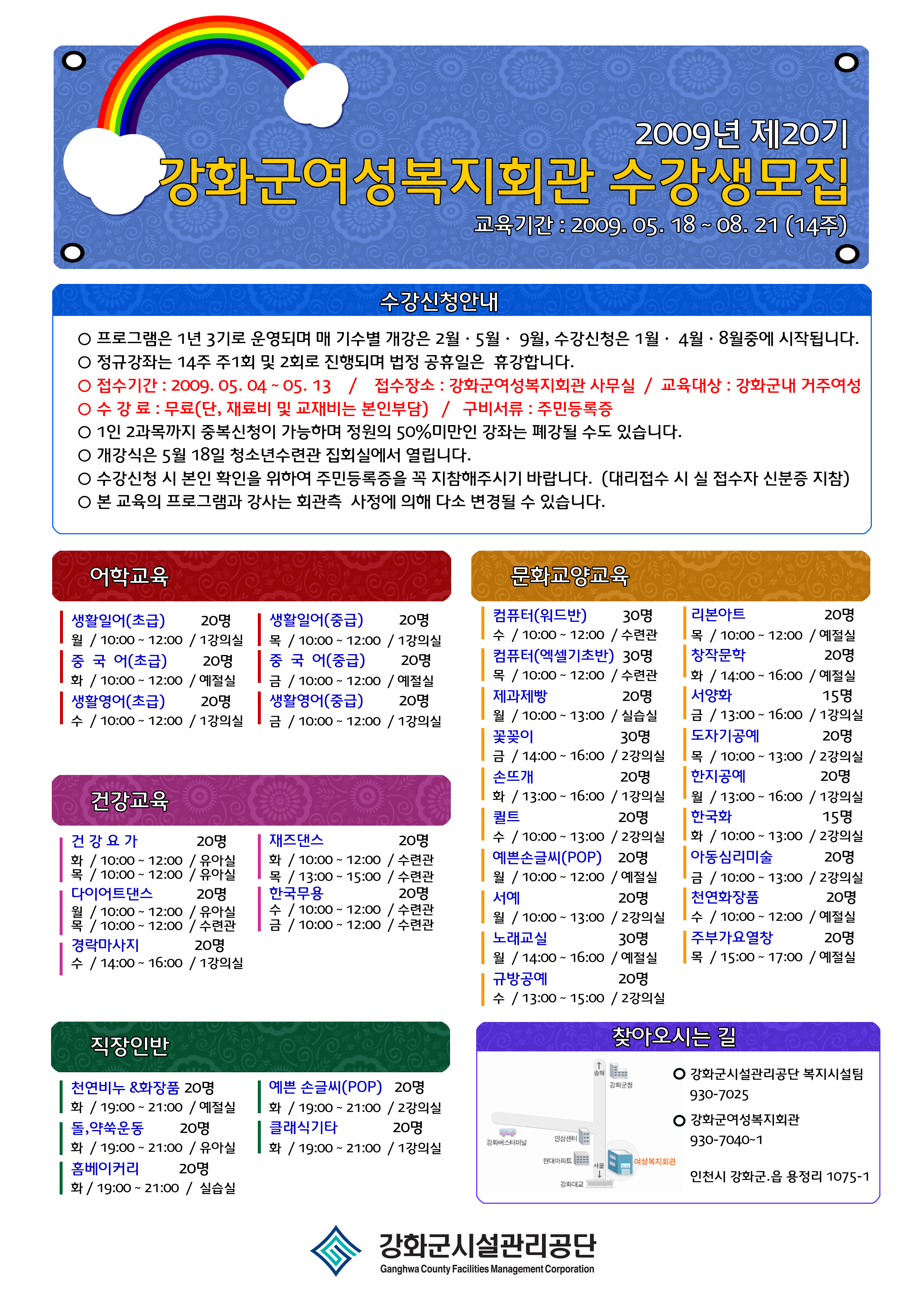 2009년 제20기 강화군여성복지회관 수강생 모집