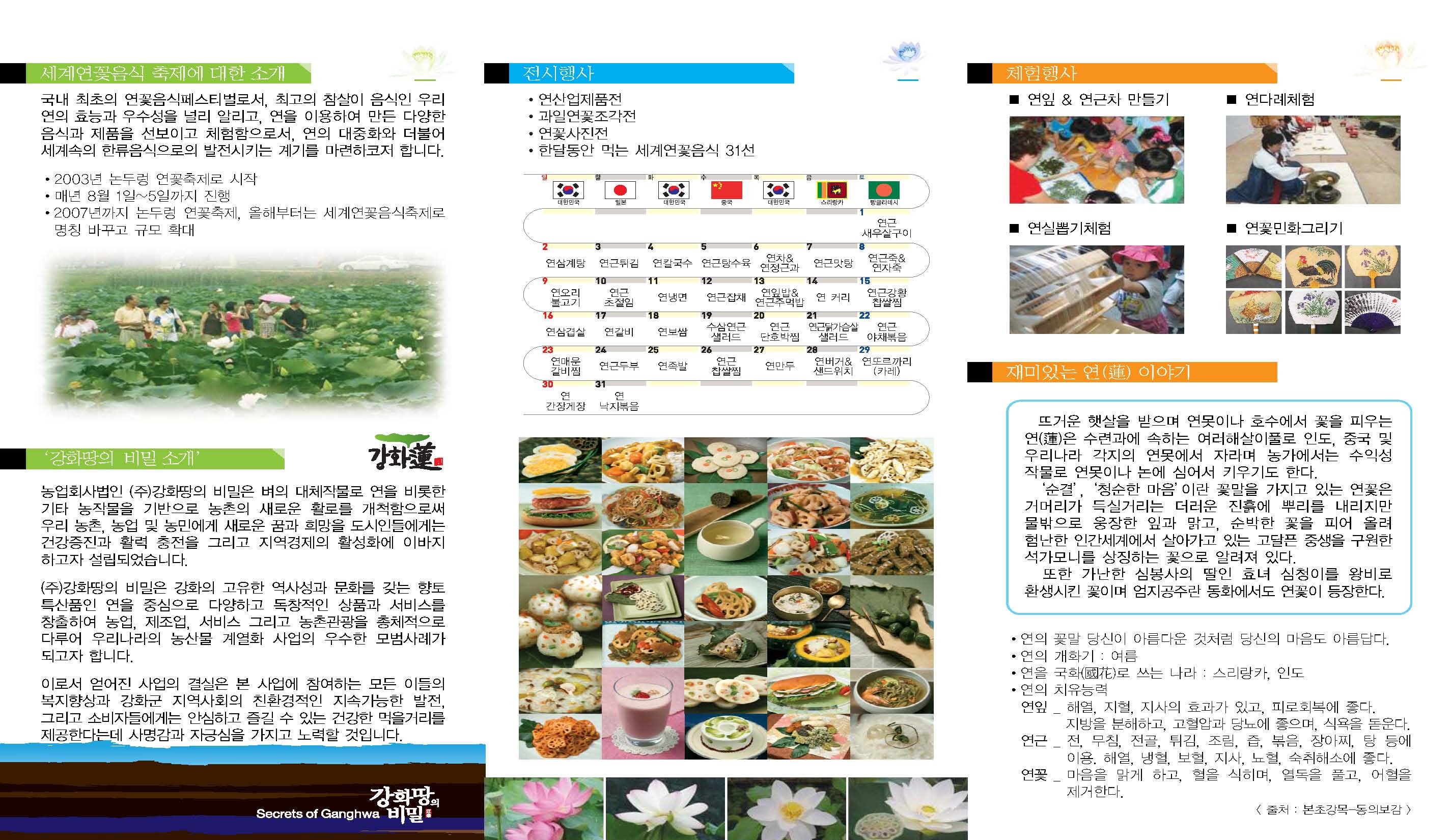 - 전시행사 : 연꽃요리31선, 연과일조각작품전, 연꽃사진전