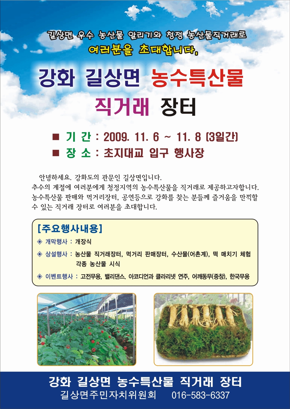 제3회 길상면 농수특산물 직거래 장터 행사를 다음과 같이