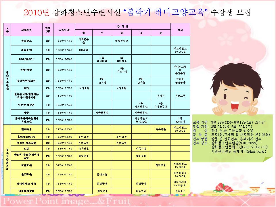 강화군청소년수련시설 봄학기 청소년 취미교양교육