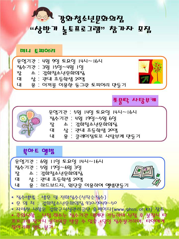 2011년 강화청소년문화의집 『놀토프로그램 신난Day』 4월 참가자 모집