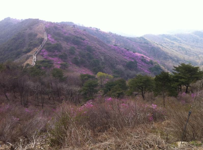 4월 24일 일요일 고려산 진달래 개화 전경입니다.