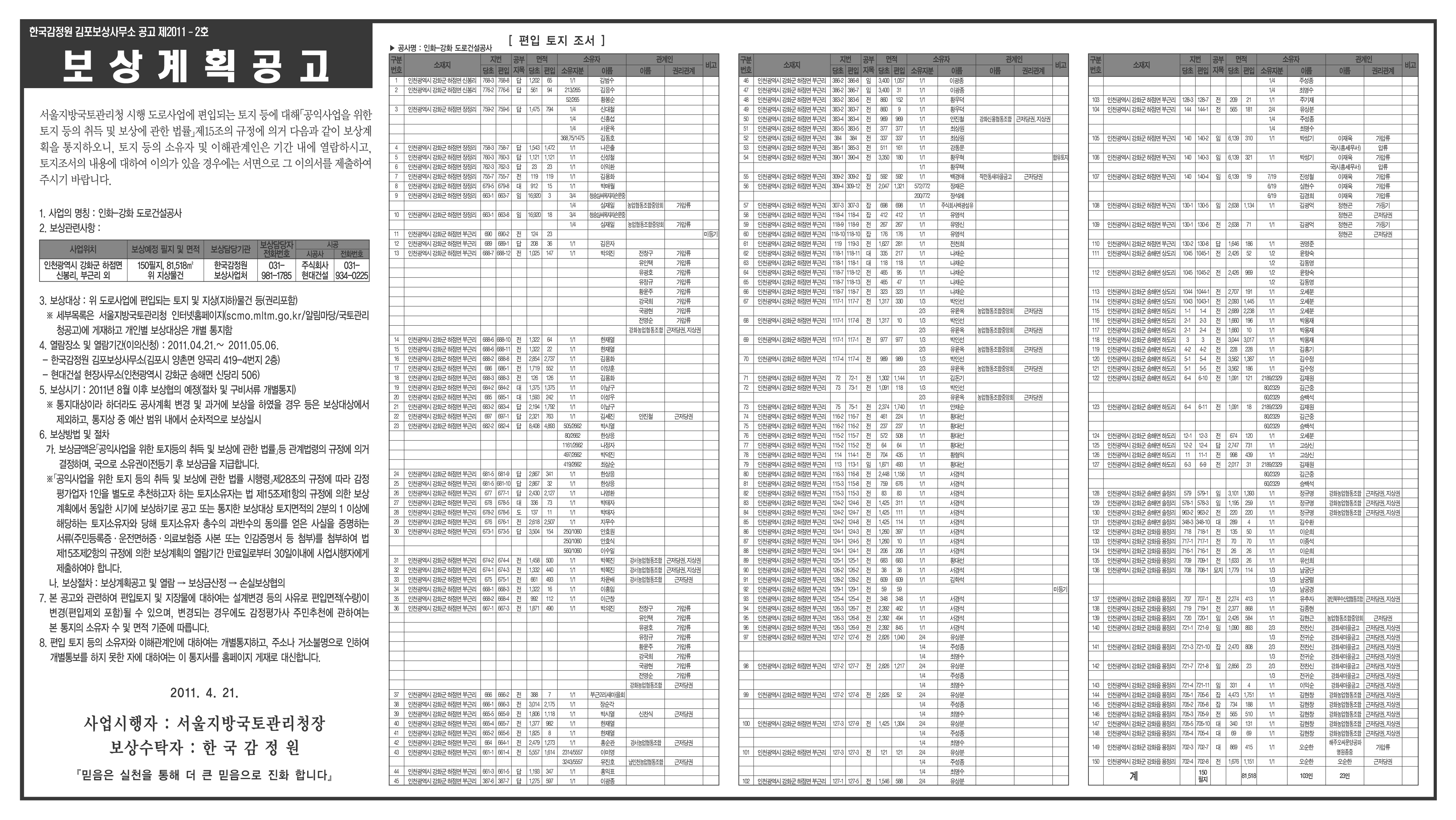한국감정원 김포보상사무소 공고 제2011 - 2호