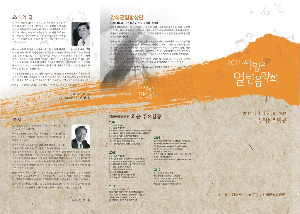 강화군립합창단에서 이번 토요일에 "2011년 사랑의 음악회 및 정기연주회"를 갖습니다.