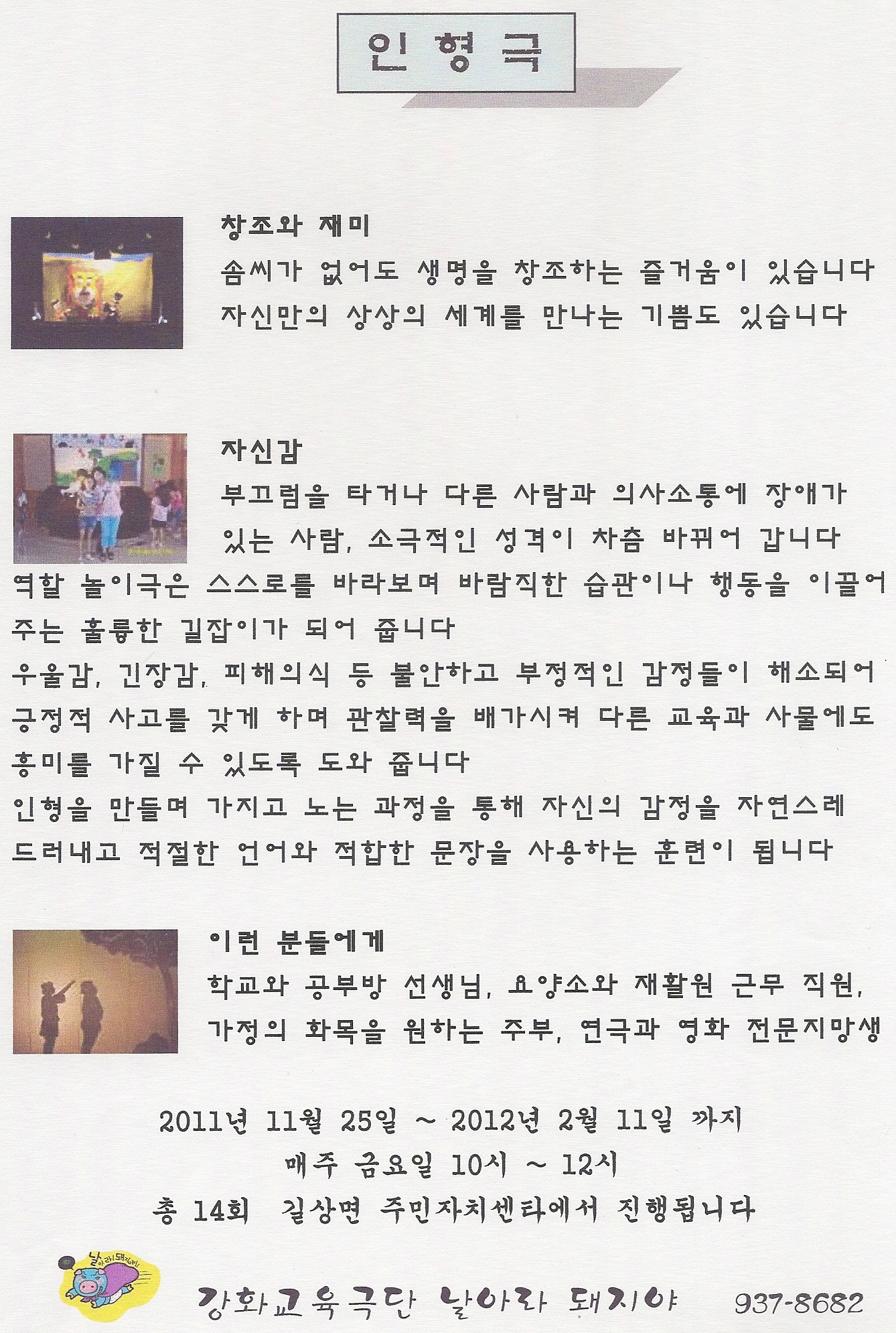 ♠ 주 최 : 강화교육극단 날아라 돼지야(☎937-8682)
