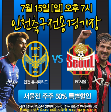 인천 유나이티드는 오는 7월 15일 FC서울전의 홈경기에서 승리하여
