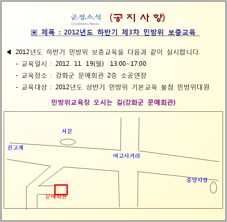 -민방위 3차보충교육 : 강화군청 민방위팀(930-3493)