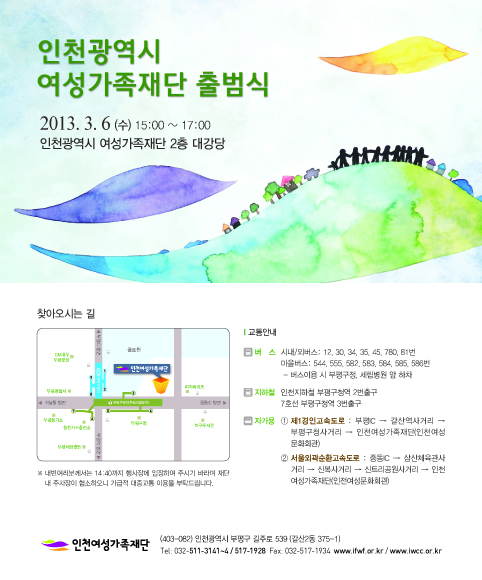 성 평등 사회실현을 위해 설립된 (재) 인천광역시 여성가족재단 출범식을 다음과 같이 개최하오니