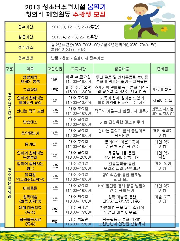 2013년 봄학기 창의적 체험활동 수강생 모집