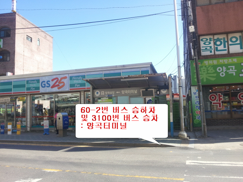 60-2번 하차정류소인 양곡터미널에서 승차(환승)