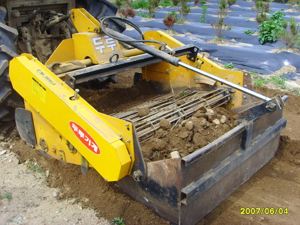 o장비설명: - 선별된 돌을 운전석에서 수집용 버켓에 담고 쏟을수 있음