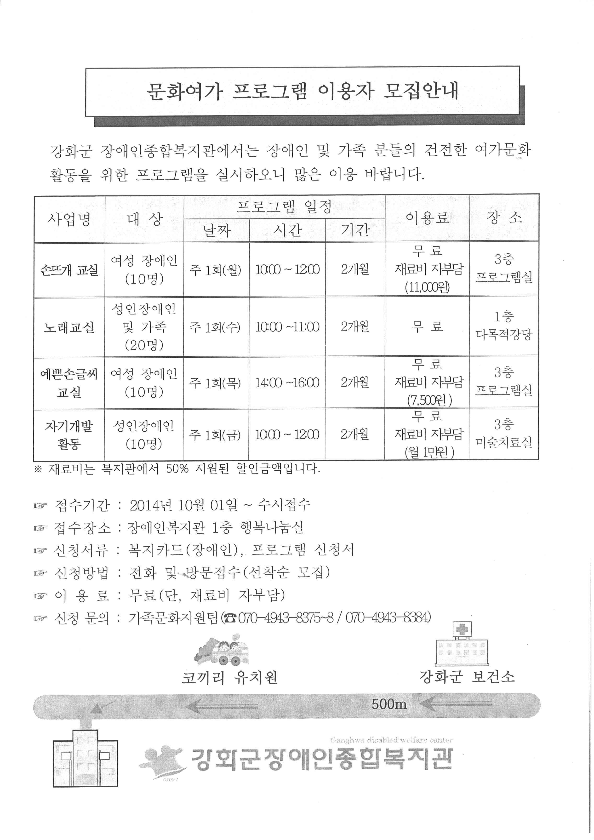 장애인복지관 문화여가 프로그램 이용자 모집안내