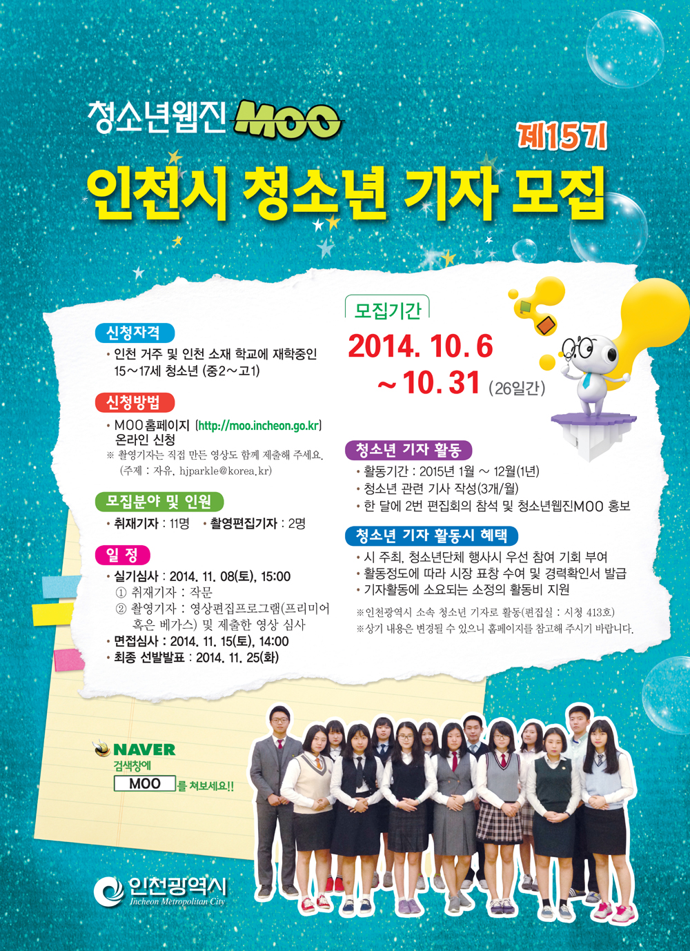 「청소년웹진 MOO」제15기 청소년 기자를 모집합니다.