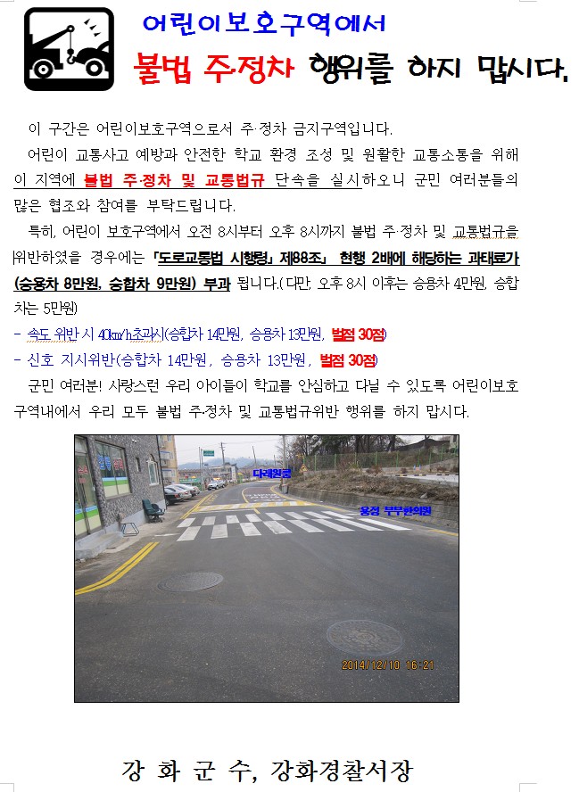 어린이 보호구역 불법 주정차 단속 실시 알림