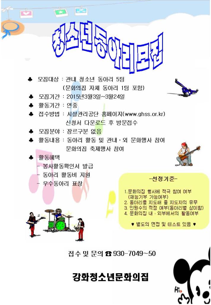 2015년 강화청소년문화의집 청소년동아리 모집!