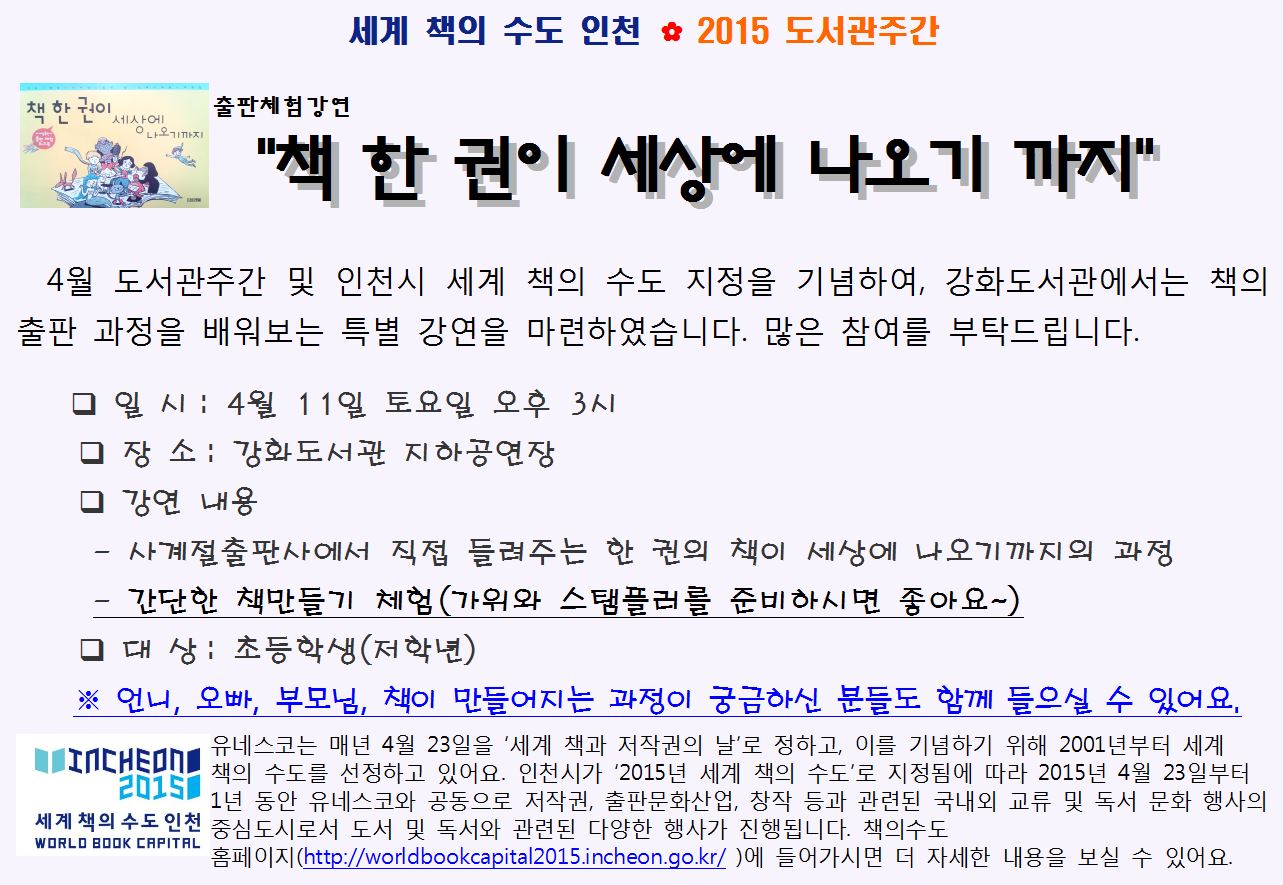 ' 책 한 권이 세상에 나오기까지' 강화도서관 출판체험강연 안내(4월11일)