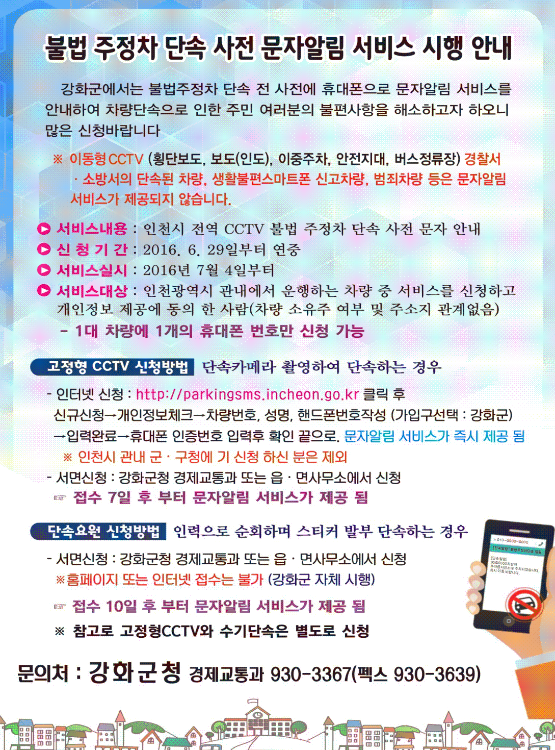 불법 주정차 단속 사전 문자알림 서비스 시행 안내
