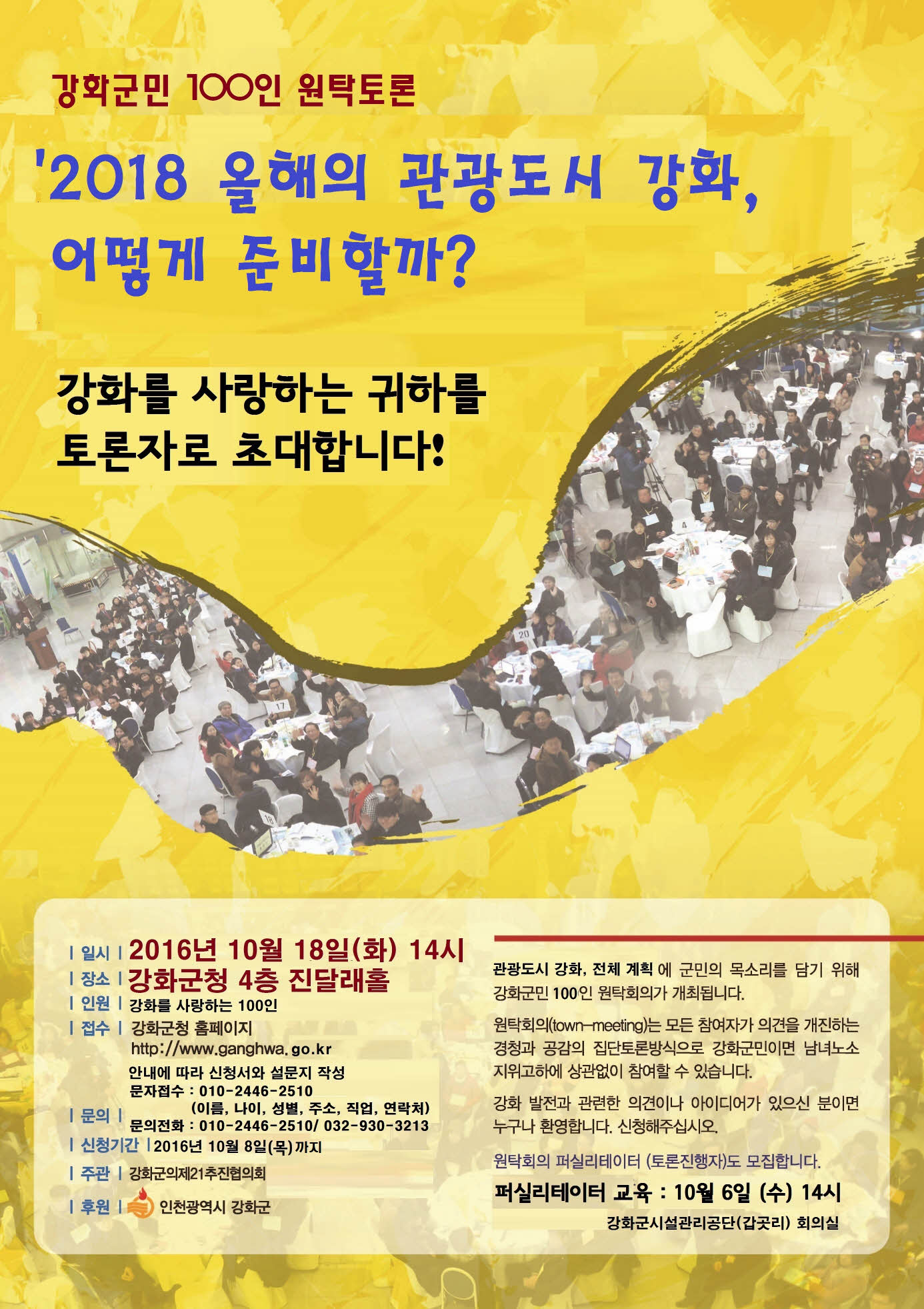 '2018 올해의 관광도시 강화, 어떻게 준비할까' 주제로 강화군민 100인 원탁토론