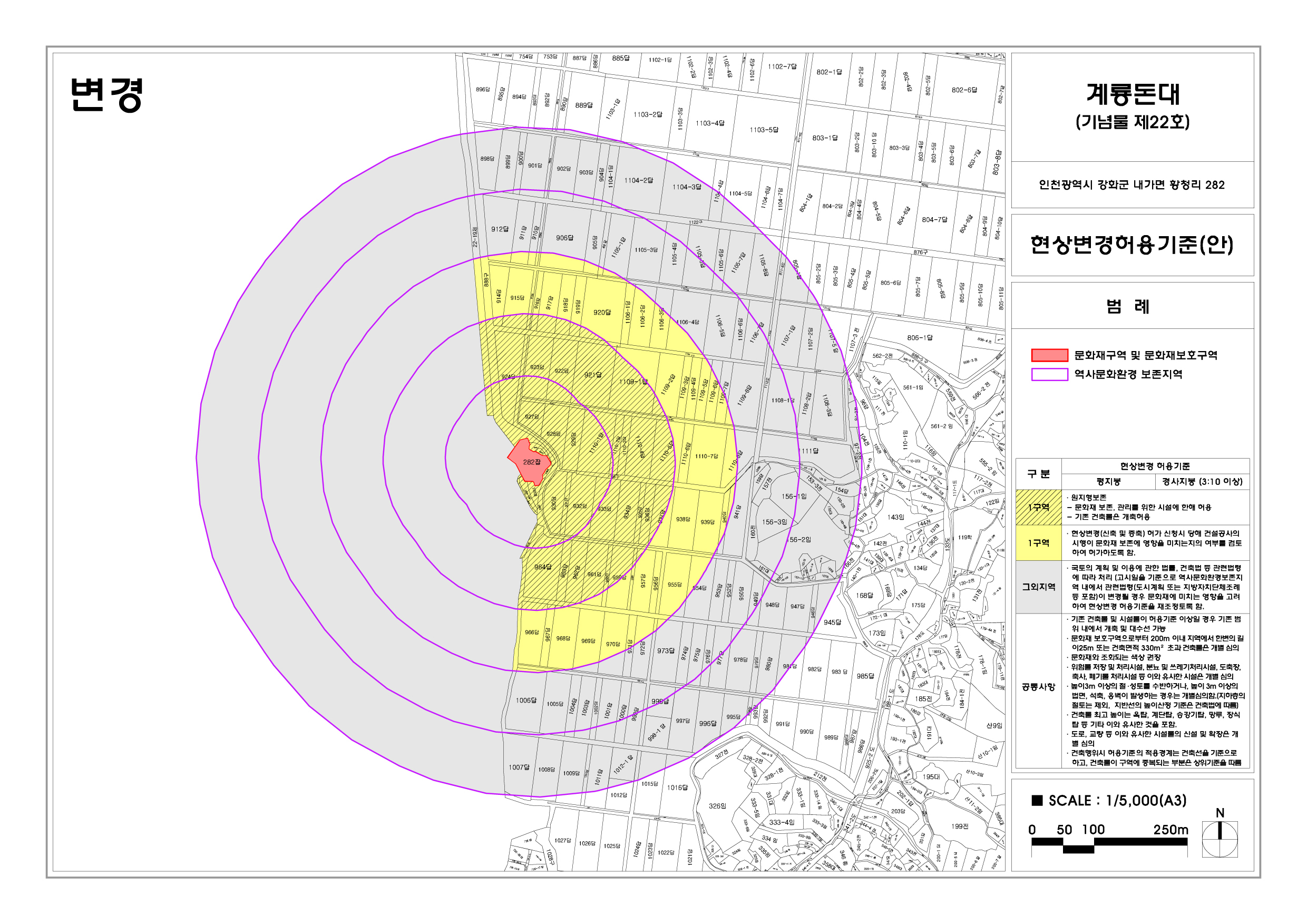 시지정문화재 주변 현상변경 허용기준(안)변경 열람․공고(내가면:적석사사적비, 계룡돈대)