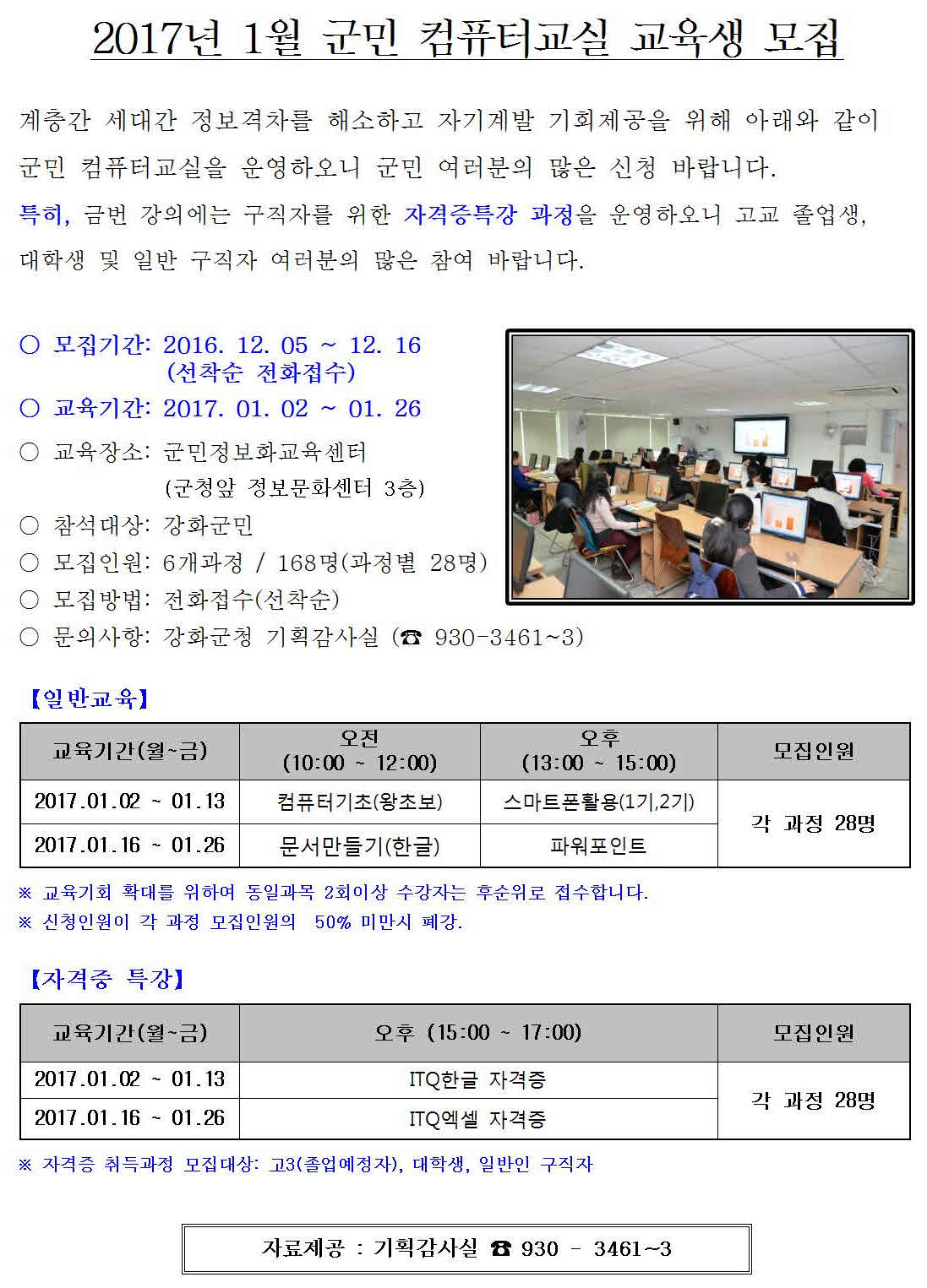 2017년 1월 군민 컴퓨터교실 교육생 모집