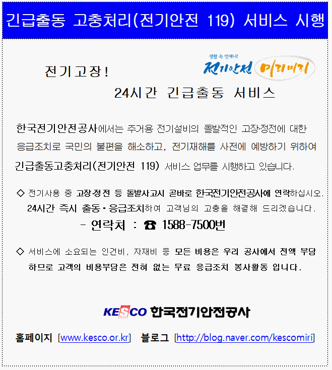 긴급출동 고충처리(전기안전 119) 서비스 안내