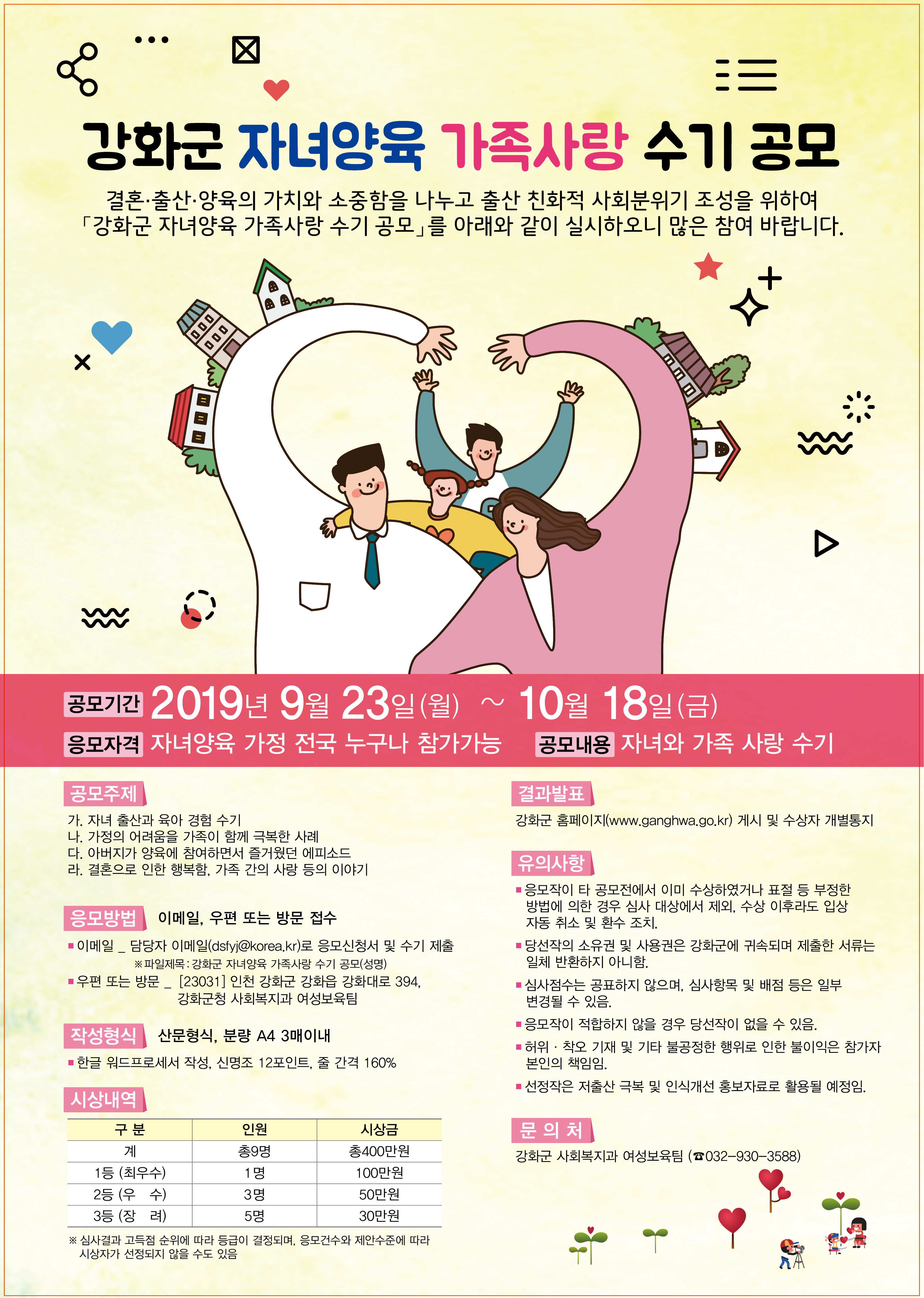 강화군 자녀양육 가족사랑 수기 공모 안내