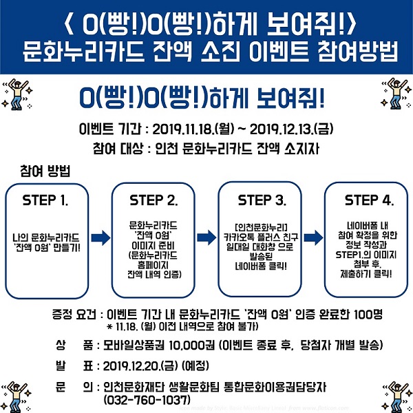 ㅇ 이벤트 관련 문의 : 인천문화재단 생활문화팀 통합문화이용권 담당자 (032-760-1037)