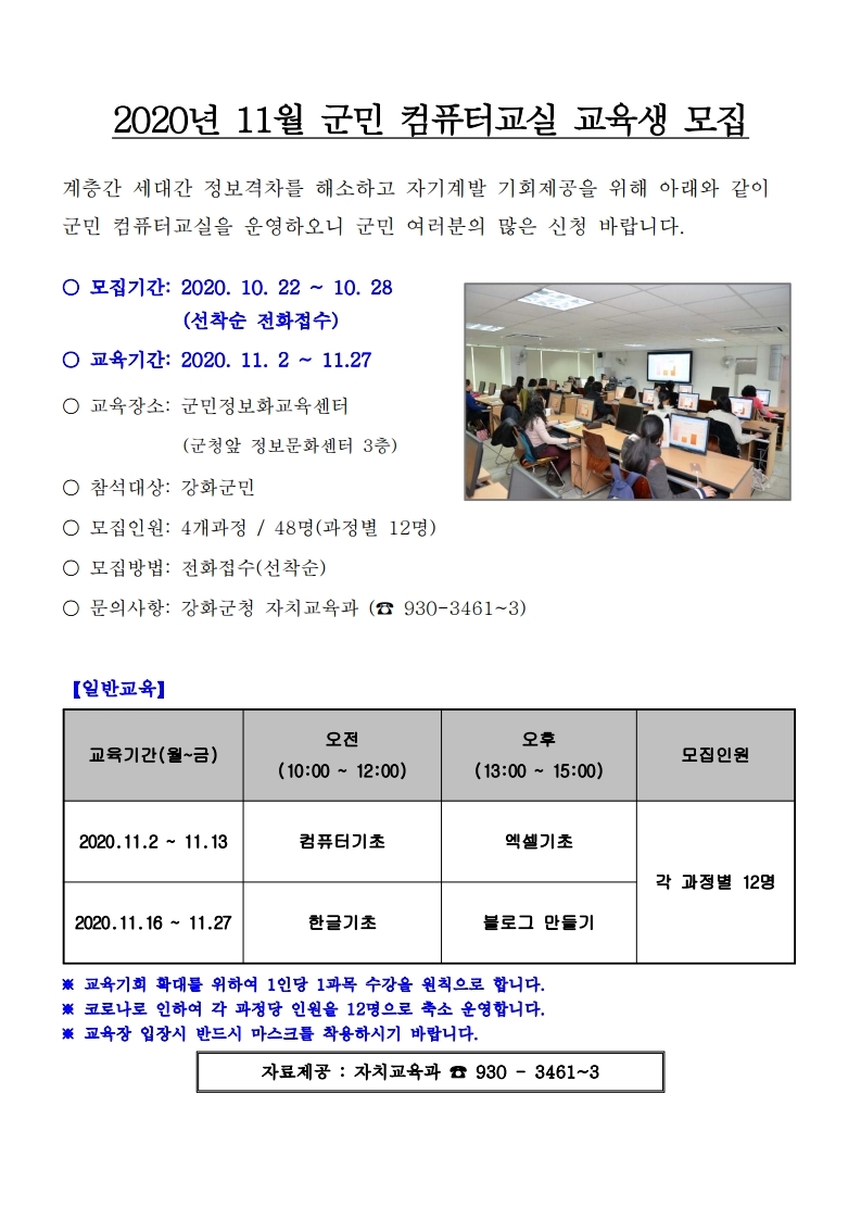 11월 정보화교육 수강생 모집안내