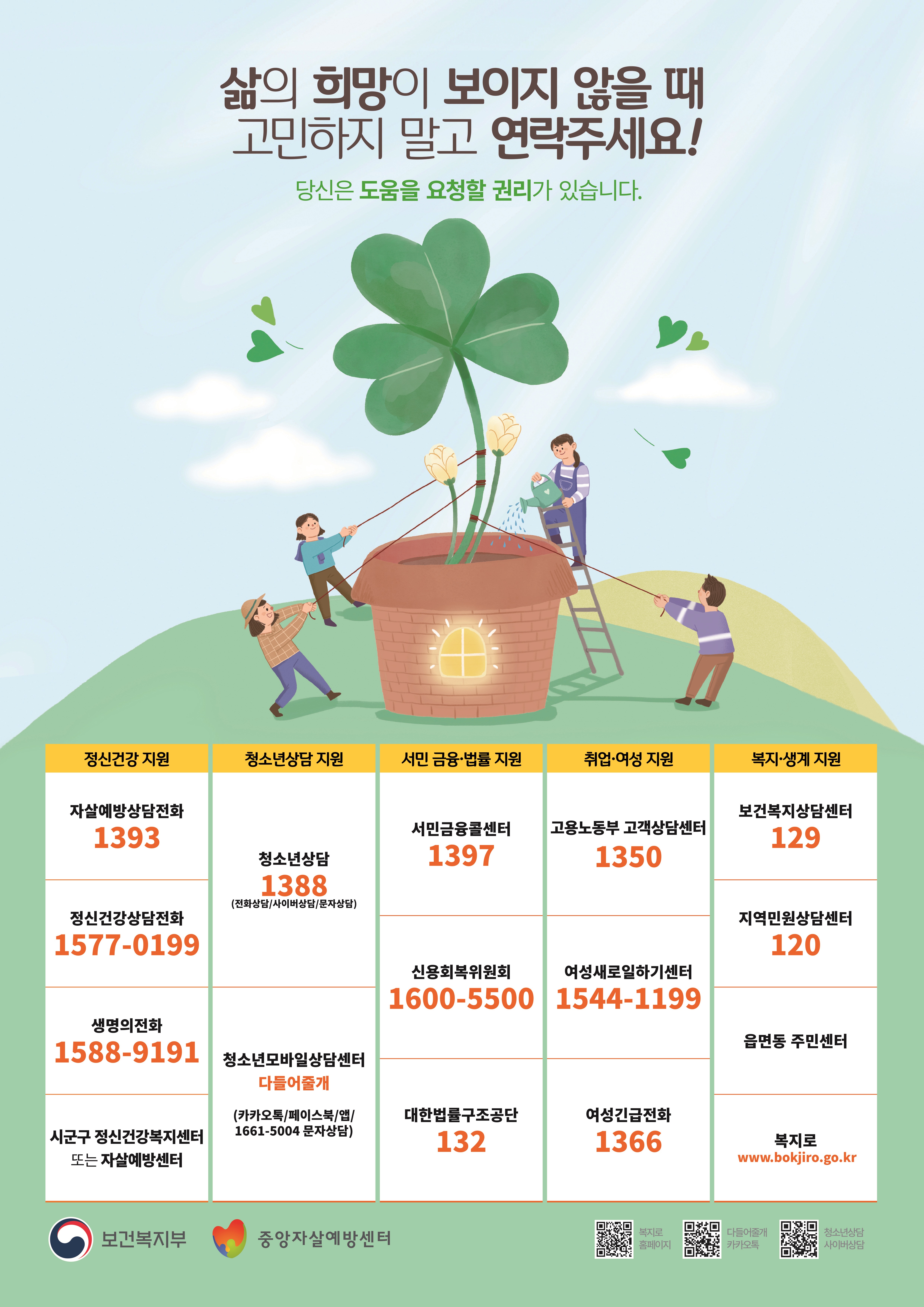 삶의 희망이 보이지 않을 때 연락주세요!