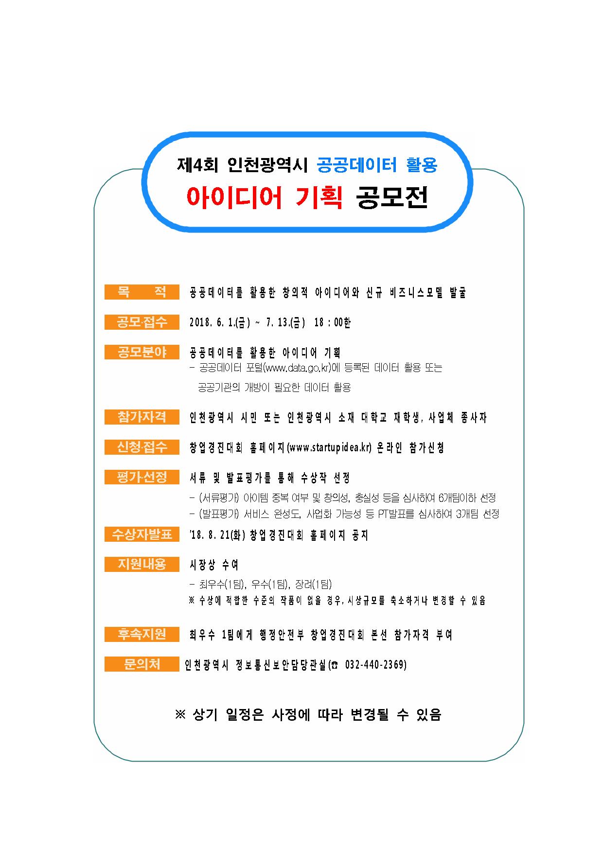 제4회 인천광역시 공공데이터 활용 아이디어 기획 공모전