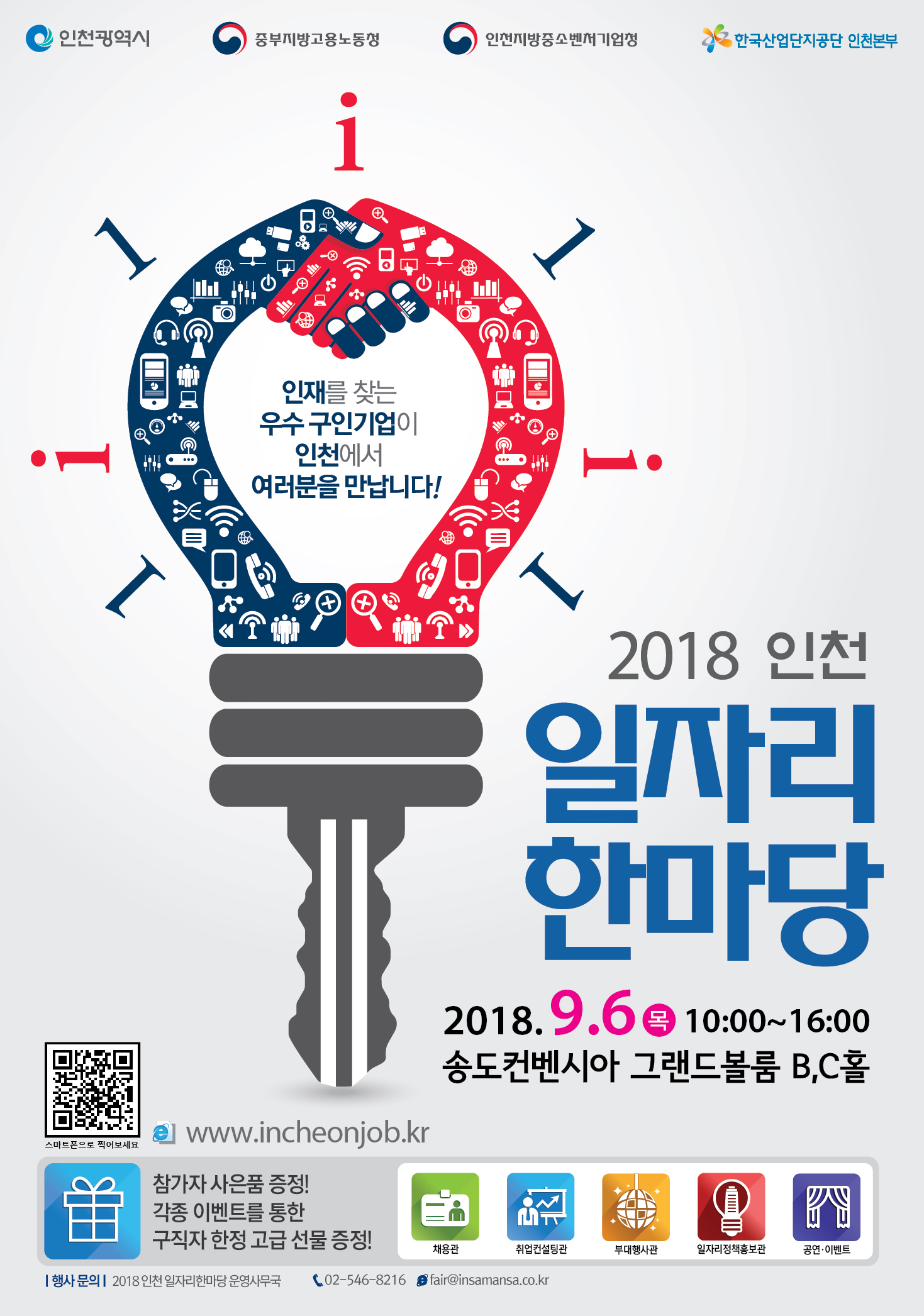 중부지방고용노동청은 인천광역시, 인천지방중소벤처기업청, 한국산업단지공단 인천지역본부와 공동으로 '2018 인천 일자리한마당'을 아래와 같이 개최합니다.