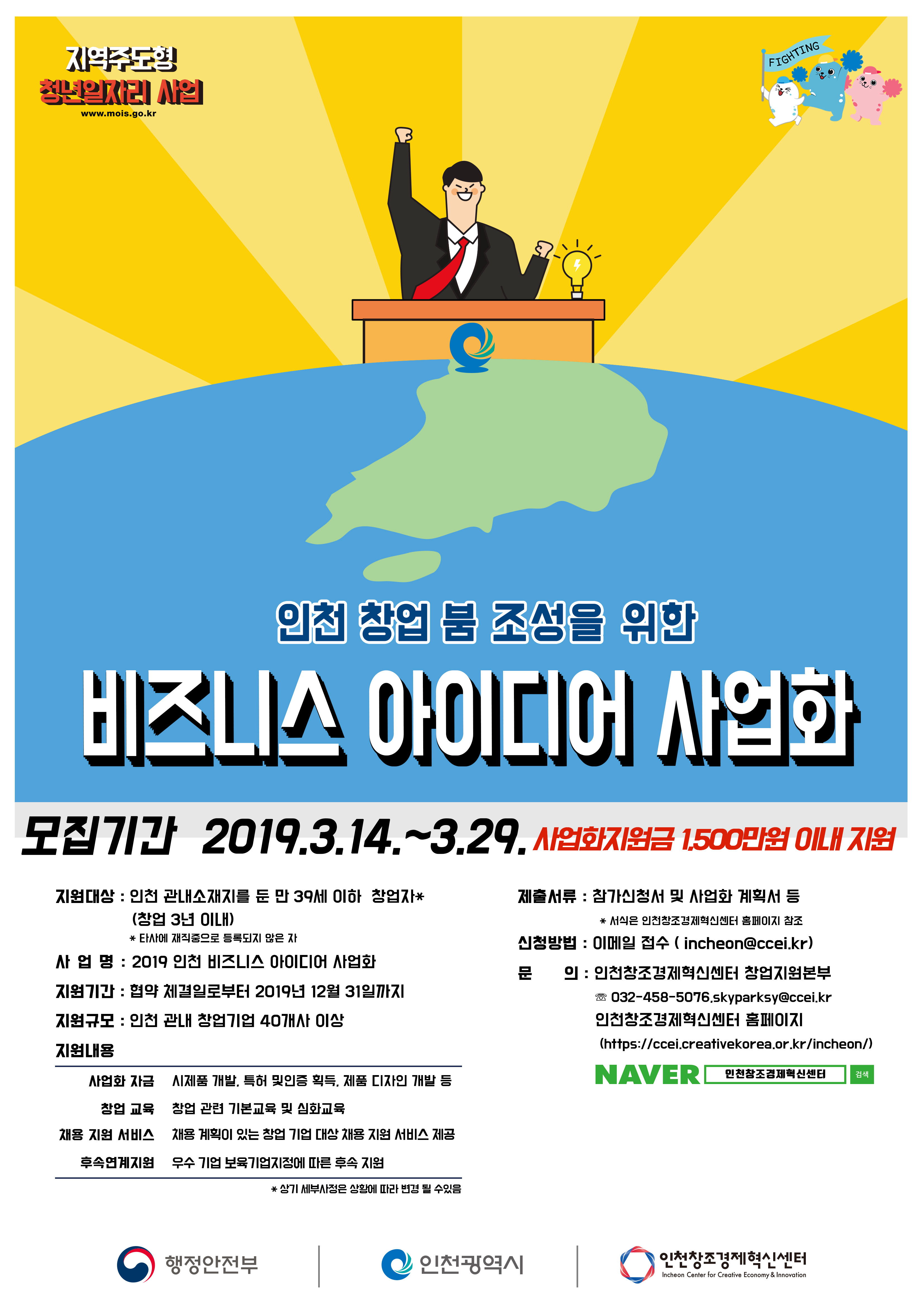 아이디어의 사업화 지원을 통해 인천 관내 창업 확산 및 지역경제 발전,  신규 고용 창출