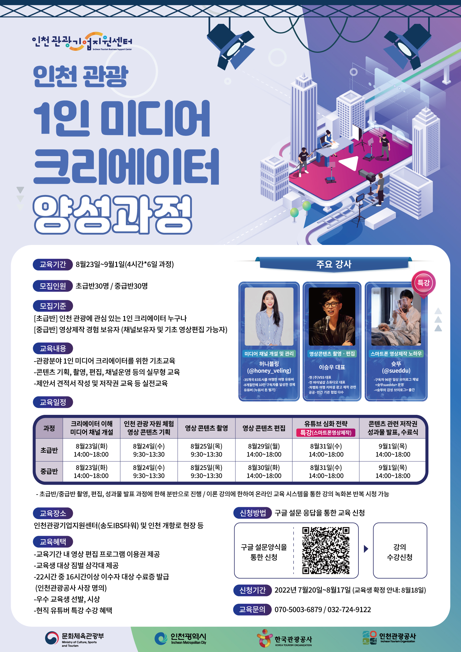 '인천 관광 1인 미디어 크리에이터 양성 과정' 교육생 모집